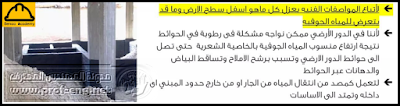 - لإننا في الدور الأرضي ممكن نواجه مشكلة في الحوائط نتيجة إرتفاع منسوب المياة الجوفية بالخاصية الشعرية حتى تصل إلى حوائط الدور الأرضي وتتسبب في رشح الأملاح وتساقط البياض والدهانات عبر الحوائط.